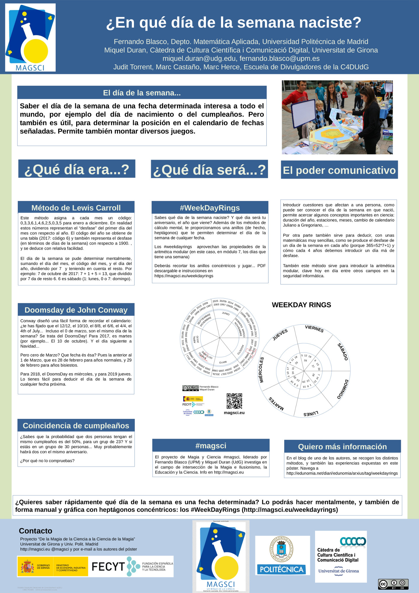 En el Congreso de Comunicación Social de la Ciencia de 2017 dentro de nuestro proyecto de Magia y Ciencia presentamos hoy y mañana varias comunicaciones relacionadas con nuestro proyecto “De la magia de la ciencia a la ciencia de la magia”. Aparte de dos comunicaciones flash, tenemos cuatro posters, que son los que siguen: