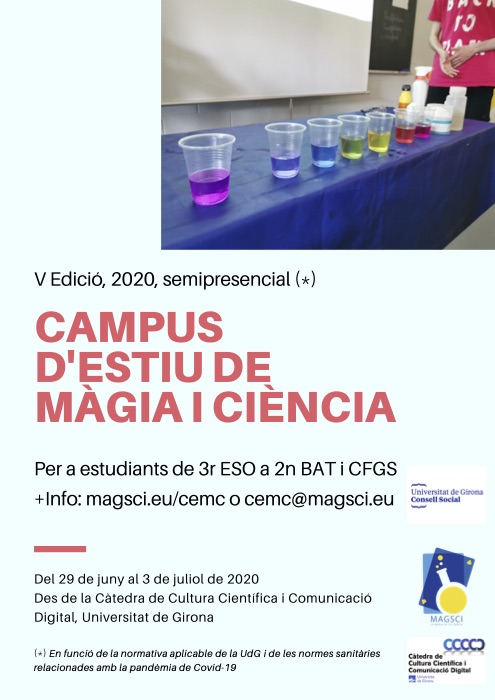 Tal com hem anat anunciant aquestes darreres setmanes, les circumstàncies difícils actuals han fet que el V Campus d’Estiu de Màgia i Ciència s’hagi hagut de fer finalment de forma totalment en línia.
