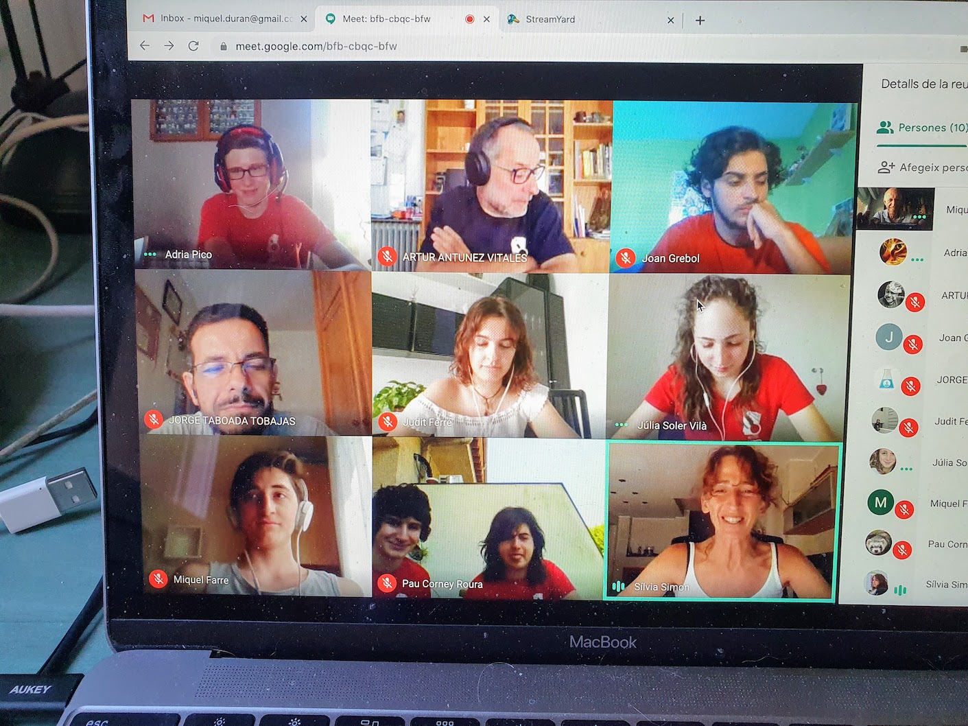Moltes gràcies als joves que ens acompanyen en l’organització (cal fer videotrobades, mantenir un grup de whatsapp actiu, enviar e-mails…), als exestudiants, a l’Artur Antúnez, i a tothom que hi participa! Ah! i hi trobem a faltar en Fernando.