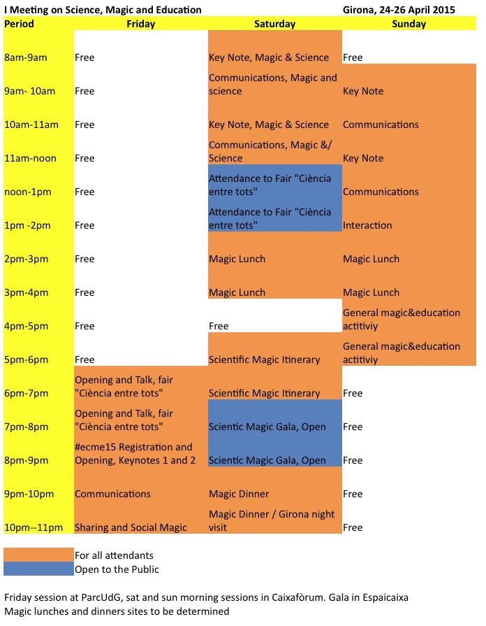 Welcome to the I Meeting on Science, Magic and Education. This is an event organized within a Project financed by Spain’s Foundation for Science and Technoly (FECyT) Projecte FCT-14-9228 “From the Magic of Science to the Science of Magic”. Its purpose is to foster the relationship between mathematical and scientific magicians and the educational world, which is needed to improve the common creative activity and formal structure of the common field of magician, mathemagicians and edumagicians.